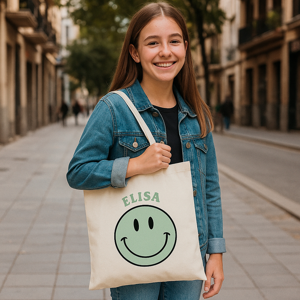 Bolsa tipo tote personalizada, fabricada con materiales naturales y respetuosos con el medio ambiente.