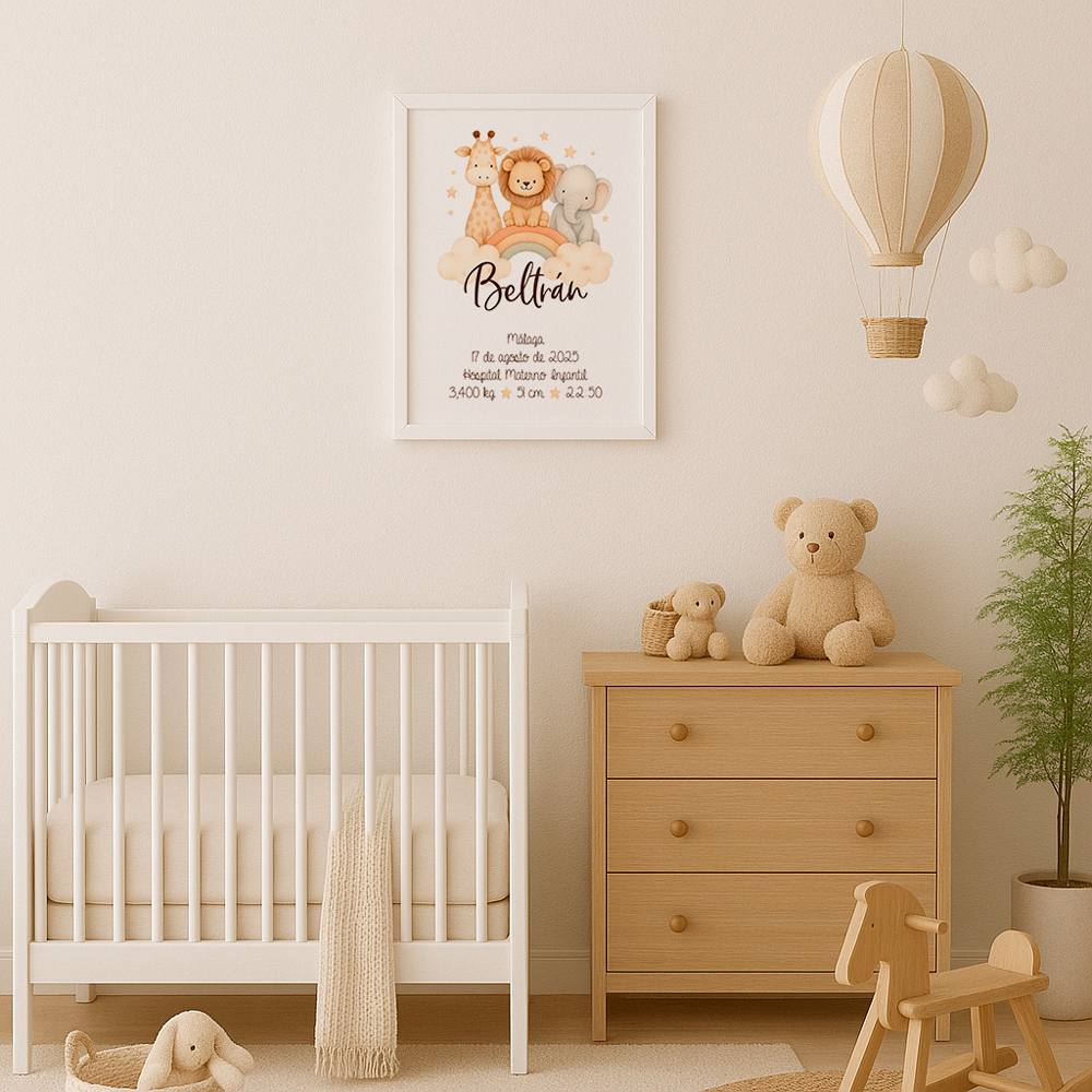 Cuadro personalizado con los datos de nacimiento del bebé.