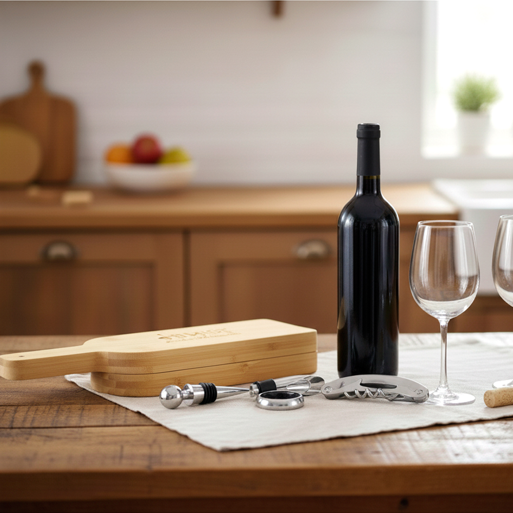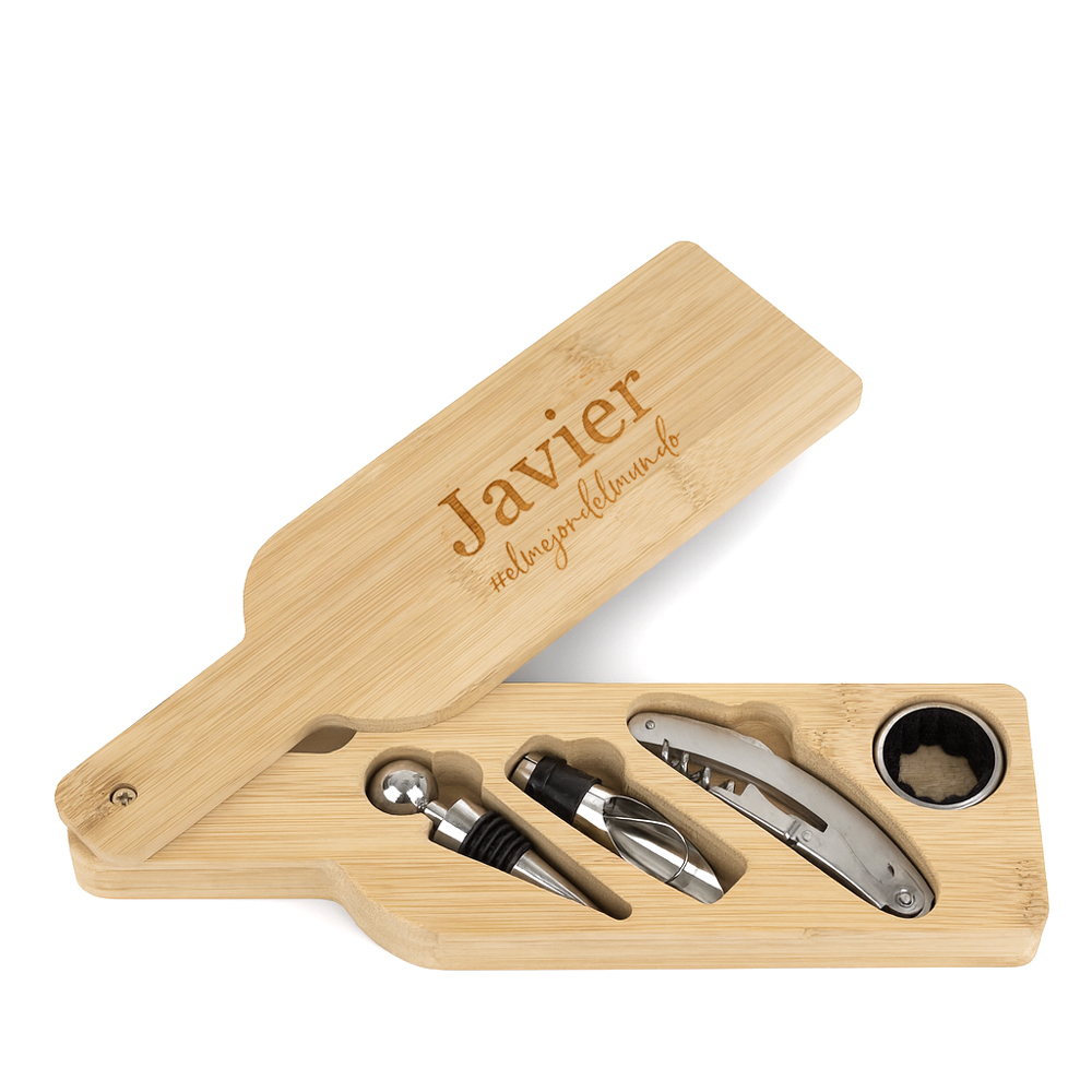 Caja con forma de botella de vino, de madera de bambú, personalizada.