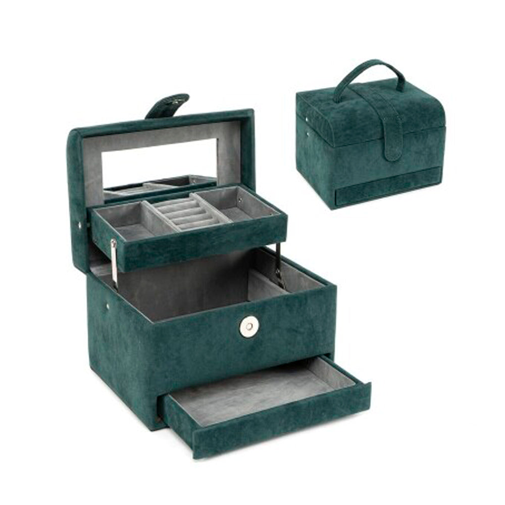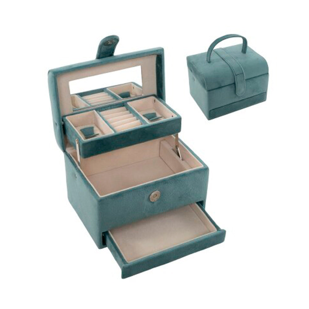 Joyero personalizado de tres niveles. Espejo interior. Tres compartimentos independientes. Para guardar anillos, pendientes, pulseras, collares y todo lo que tú quieras! El joyero verde, verde agua y topo son de terciopelo.